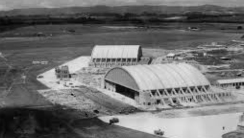 Kuvateksti: Kuvahaun tulos englanninkielisellä hakusanalla 1940-luvun lentokonehalli. Havainnekuva, kuva ei liity tapaukseen. [Linkki Wikipedia: Lentokonehalli]