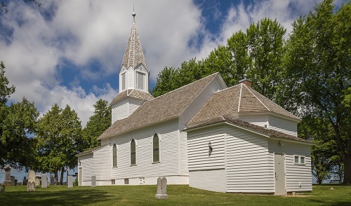 Kuvateksti: Haastateltu Jacques Vallée kertoo nähneensä nuorena kaupungin kirkon yllä klassisen lentävän lautasen. Kuvan kirkko ei liity tapaukseen. [Linkki Wikipedia: Kirkko (rakennus)]