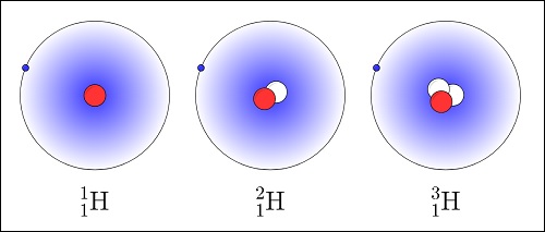 Kuvateksti: Vedyn kolme isotooppia protium, deuterium ja tritium. [Linkki Wikipedia: Isotooppi]
