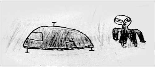Äitini kutsui meitä, koska hän näki taivaalla jotain mitä hän ei ollut koskaan ennen nähnyt. Liityin hänen seuraansa pihamaalle puutarhaan. Näin liikkumattoman kiekon. Se oli ilmeisesti noin puolen kilometrin päässä kaupungin kirkon yllä. Kiekon yläosassa oli pieni kupu, tiedäthän: klassinen lentävä lautanen.