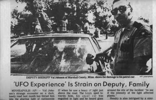 Vaikka Joyce oli täysin ymmällään kokemuksesta, jotkut asiantuntijat ovat huomauttaneet, että ley-linjat houkuttelevat usein muukalaisolentoja puoleensa. [Linkki Wikipedia: Ley-linja] Ja on totta, että juuri siinä paikassa missä auto pysähtyi, risteää kaksi muinaista hautakumpuriviä. Ne levittäytyvät tuosta kumpujen välisestä paikasta lähistölle kohti toisia vanhan Winchesterin suunnassa olevia, ja risteävät toisen kauempaa pohjoisesta alkavan ley-linjan kanssa…  [jatkuu sivulla 11, lehtijutun loppu ei näy]