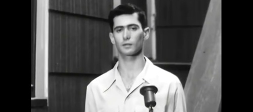 Kuvateksti: Lentäjäoppilas Arthur Weisberger antamassa alle käännettyä lausuntoaan.